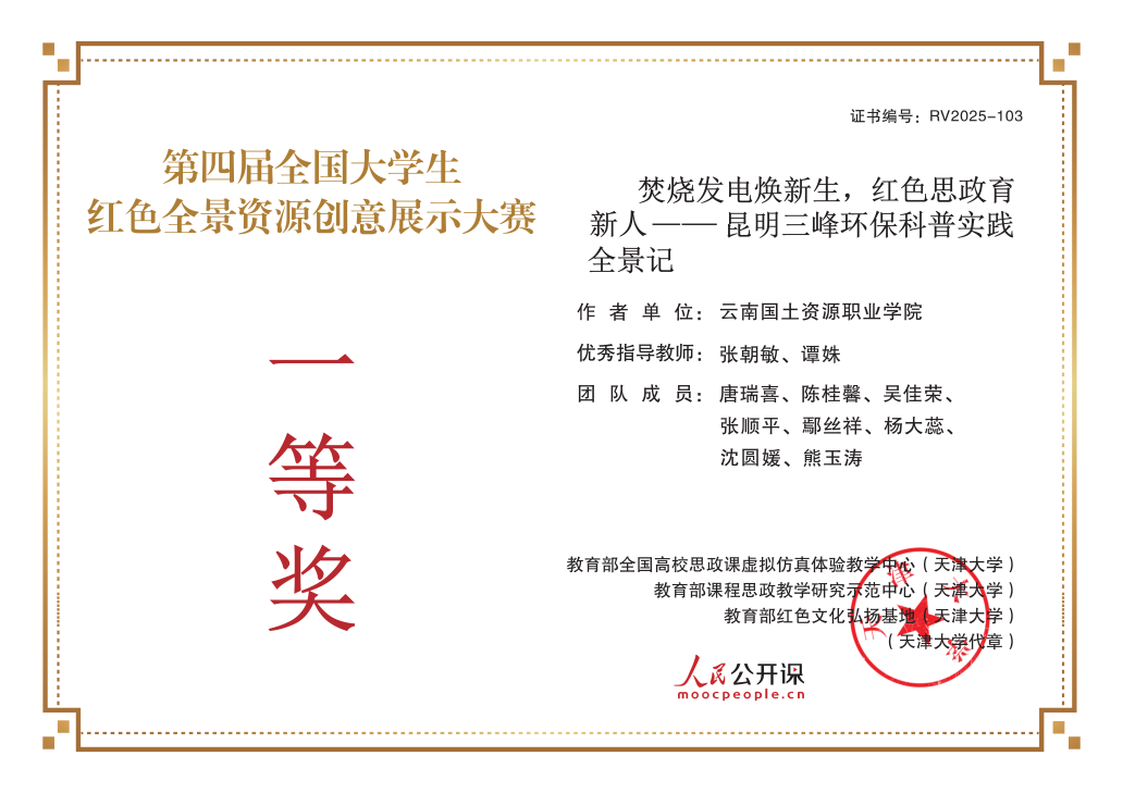 第四届全国大学生红色全景资源创意展示大赛结果于近日揭晓,我校学生作品《焚烧发电焕新生,红色思政育新人——昆明三峰环保科普实践全景记》荣获一等奖。本届大赛由教...[阅读全文]