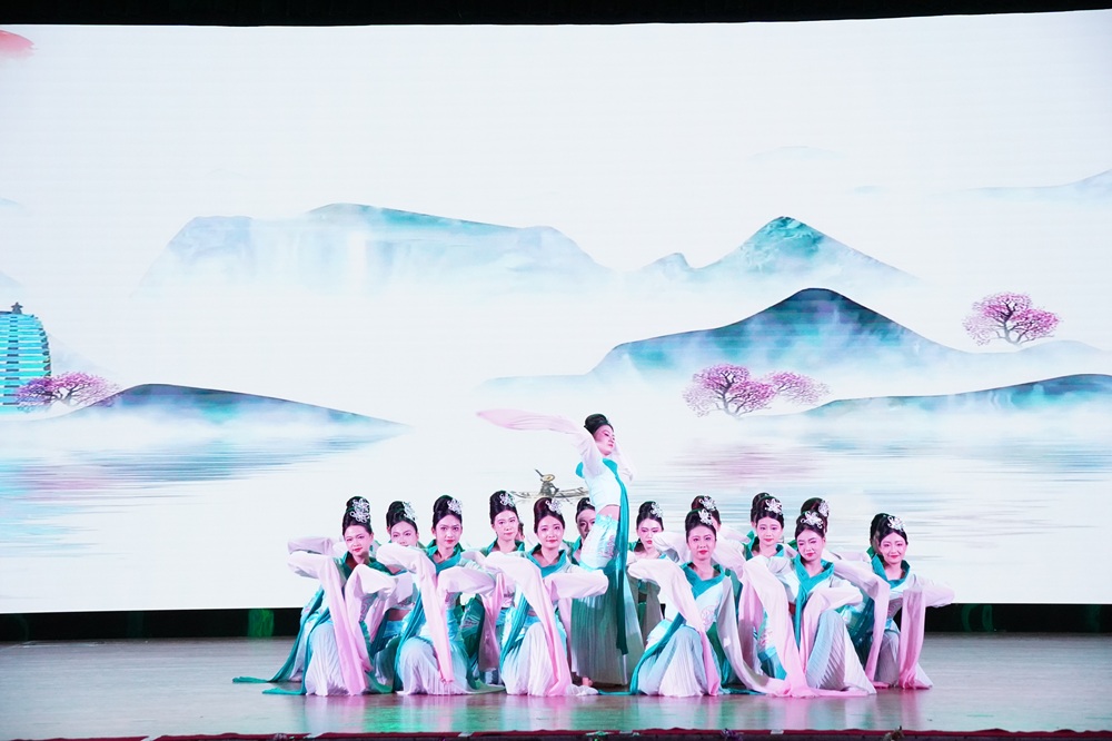 汇演在大学生艺术团带来的舞蹈《采薇》中拉开序幕,古典水袖与诗意舞姿重现中华文明的千年风骨。