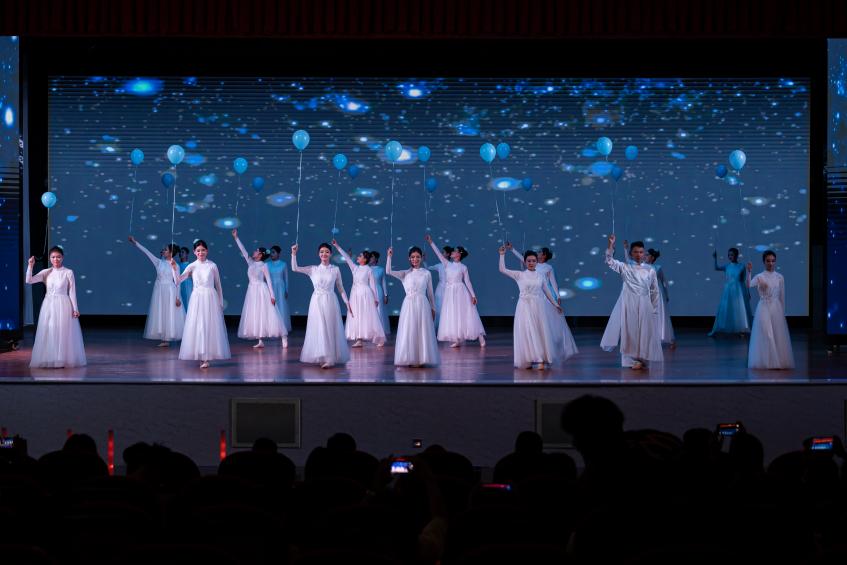 商务信息学院舞蹈《追光者》,舞者以气球携光而来,以光影演绎林觉民《与妻书》的家国大义,新时代青年追随先辈足迹,将信仰化作奔赴未来的力量,致敬百年征程中的赤诚之心。