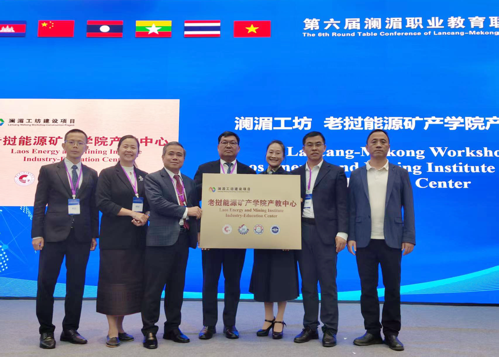 当日下午,在第六届澜湄职业教育联盟圆桌会议上,副校长张云霞及我校澜湄工坊项目合作方老挝工业贸易部工业商业能源研究院、老挝理工学院、中国地质调查局昆明自然资源综合调查中心代表共同出席了澜湄工坊授牌仪式。