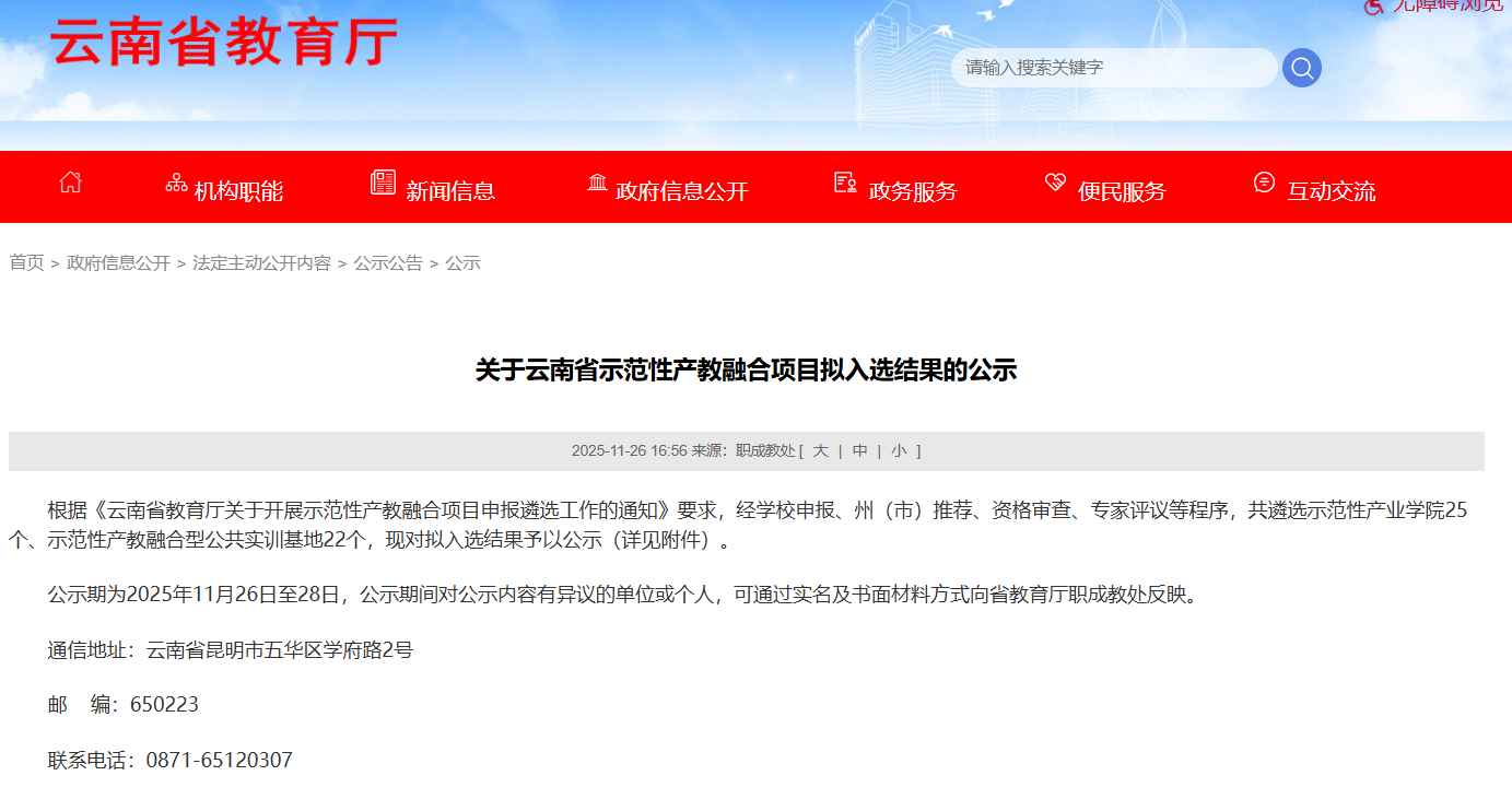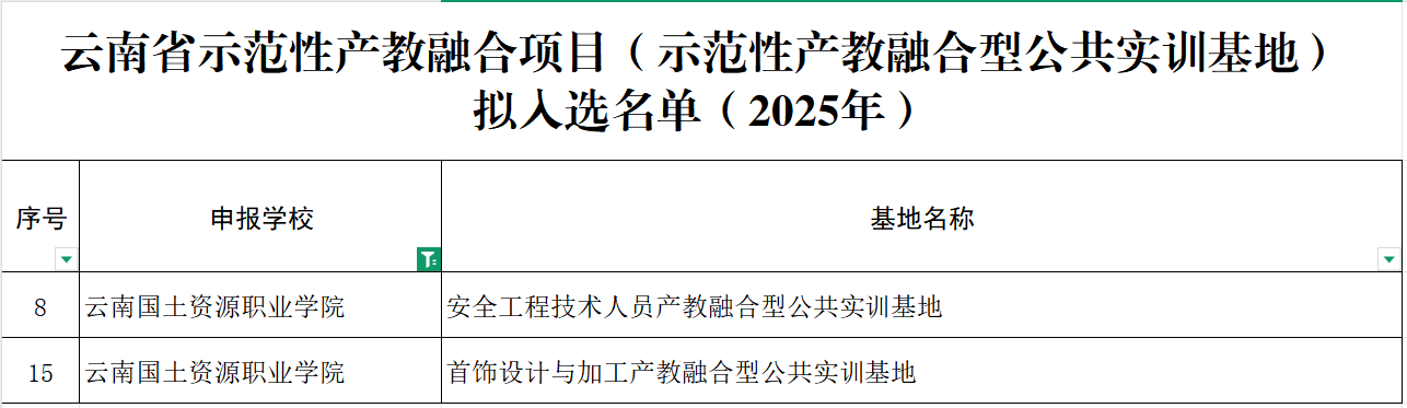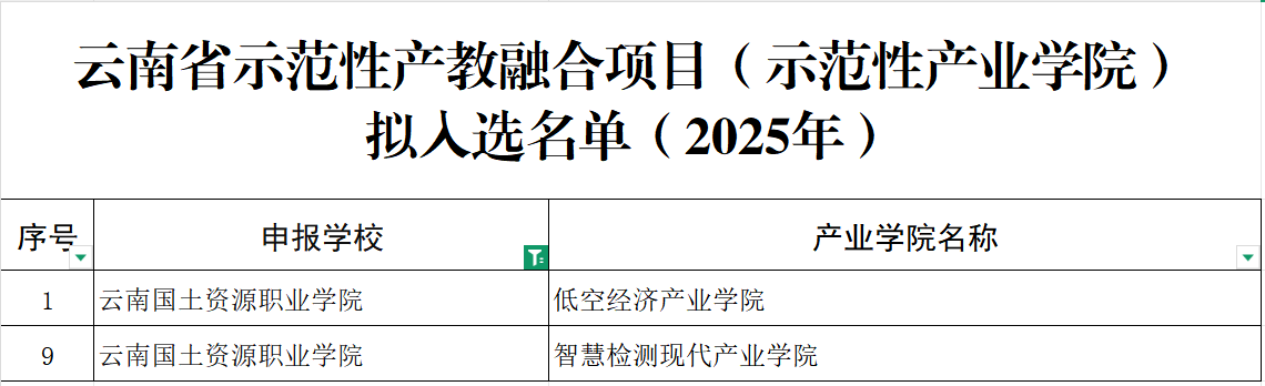 根据《云南省教育厅关于开展示范性产教融合项目申报遴选工作的通知》精神,经学校申报、州(市)推荐、资格审查、专家评议等程序,省示范性产教融合项目遴选结果正式揭晓。我校申报的“低空经济产业学院”与“智慧检测现代产业学院”入选“云南省示范性产业学院”。同时,“安全工程技术人员产教融合型公共实训基地”与“首饰设计与加工产教融合型公共实训基地”入选“云南省示范性产教融合型公共实训基地”。