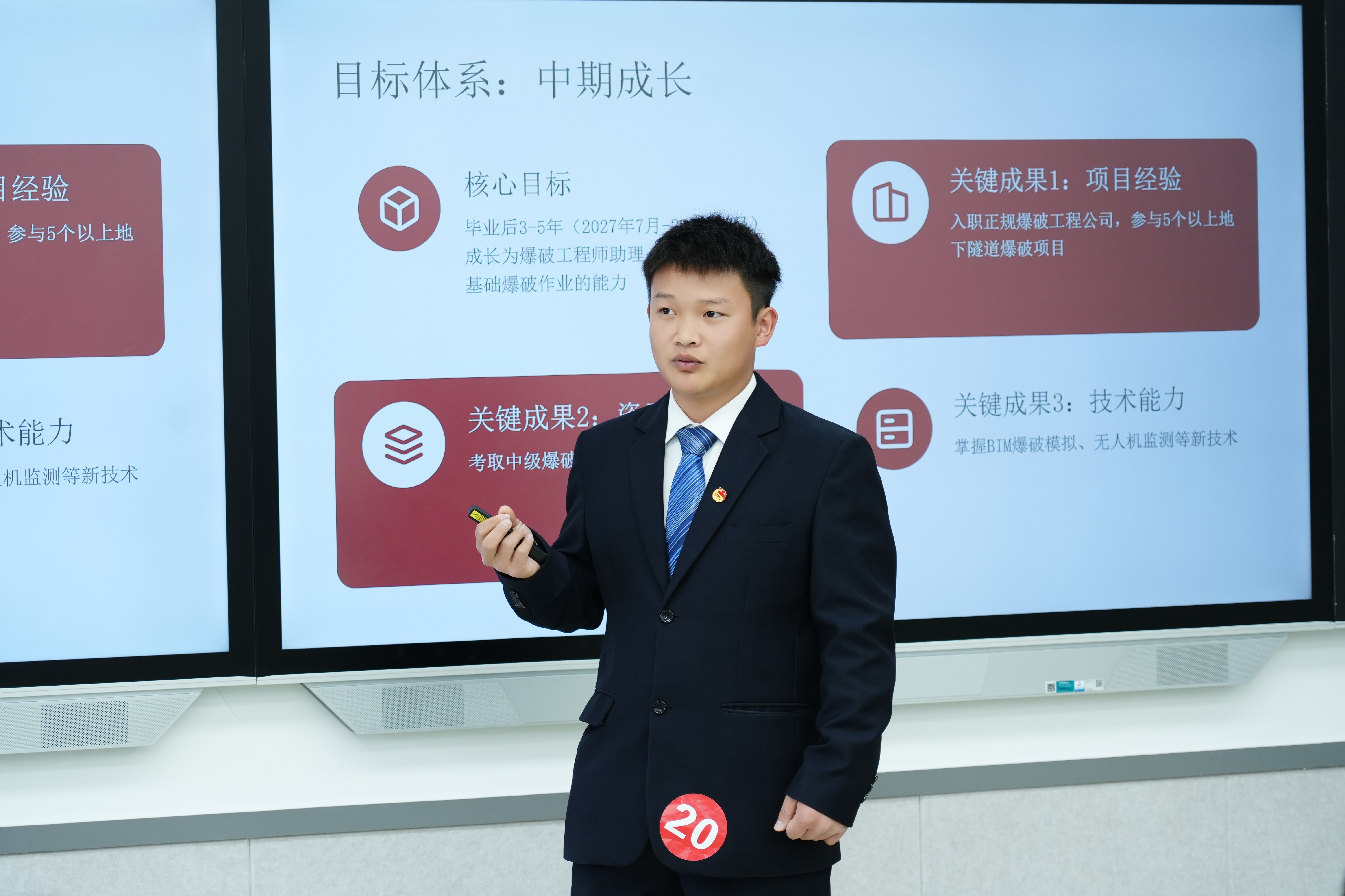 本次比赛共有6800余名学生报名,经选拔,49位优秀选手晋级校内决赛,其中,成长赛道25名、就业赛道24名。比赛组织严密、流程规范,选手通过“自我介绍及主题陈述”“评委提问” 环节展示职业规划成果。他们立足专业背景,围绕传统行业转型升级、新兴领域创新发展等主题,提交兼具专业深度与社会价值的规划方案;问答环节中,选手思路清晰、虚心纳谏,展现出勤学善思、追求卓越的良好风貌。