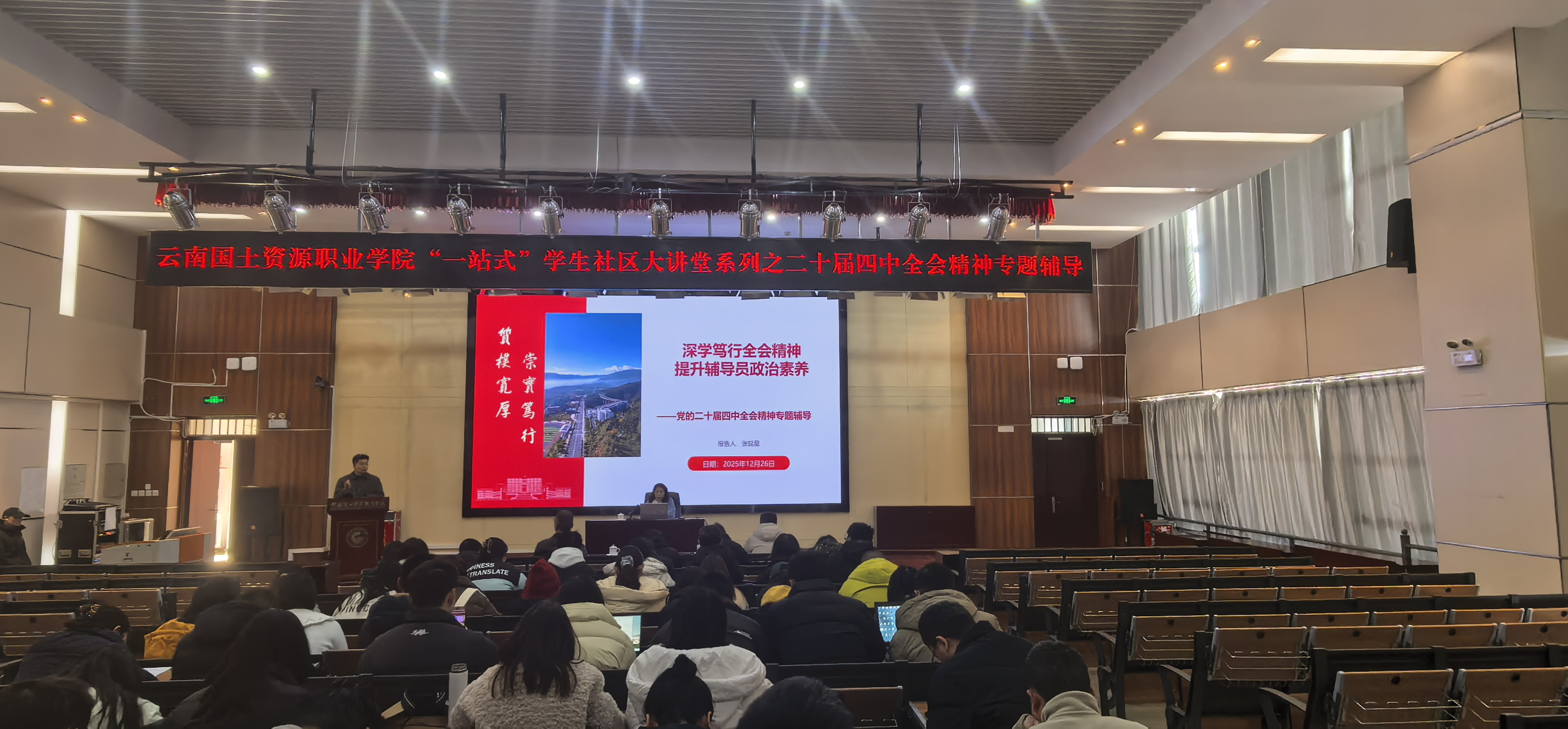 为深入学习贯彻党的二十届四中全会精神,牢牢把握立德树人根本任务,持续夯实学校辅导员队伍建设根基,全面提升育人能力与综合素养,12月26日,我校组织开展二十届四中全会精神专题辅导培训。马克思主义学院院长张延星受邀担任主讲,全体专兼职辅导员参加。