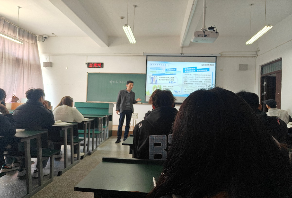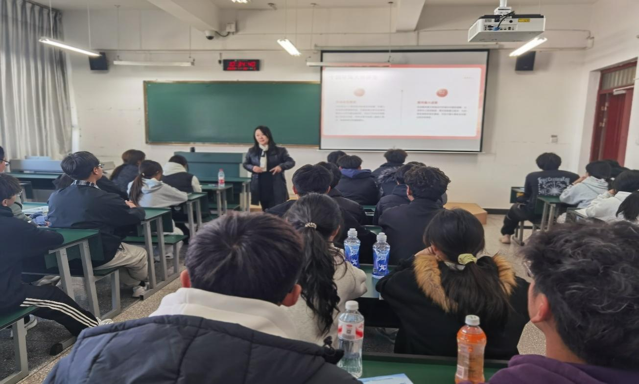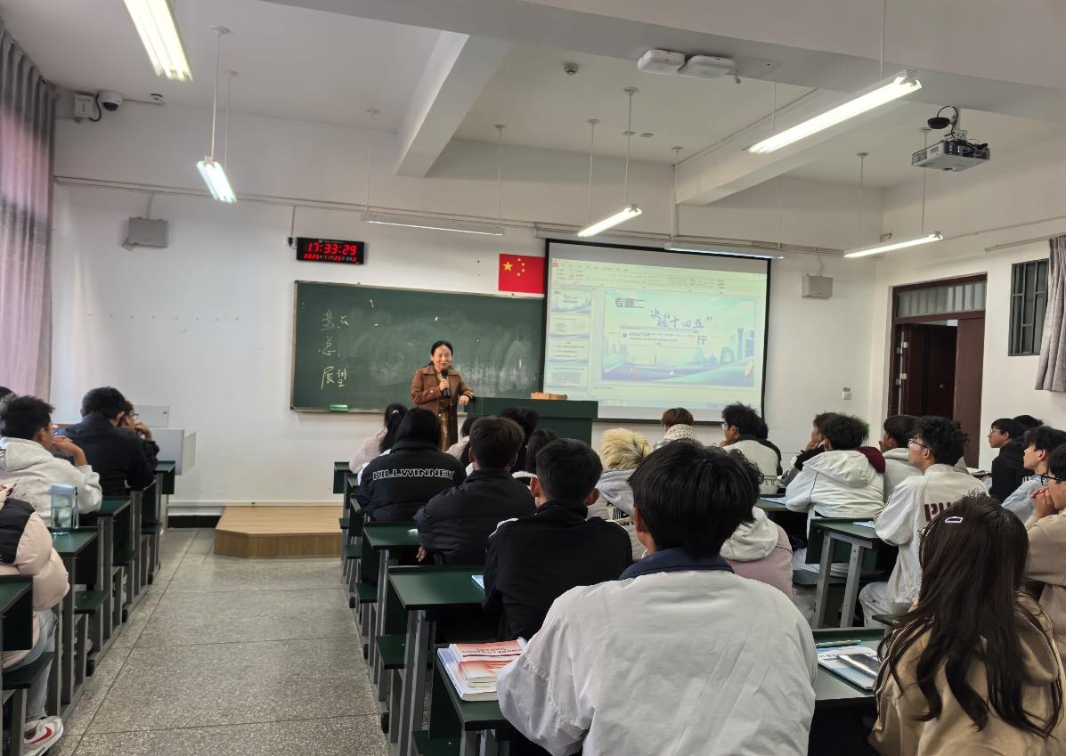 党委副书记李昆峰以“正确认识中国经济热点问题”为题,分别从经济基础与上层建筑的关系、国际博弈的实质、历史镜鉴、现实挑战与应对以及国内发展根本目标等多个维度进行讲解。引导学生认清中国和平发展道路的定力与智慧,阐明科技自立自强与供应链安全的战略意义。不仅厘清了热点背后的逻辑,更激发了学生投身国家发展的责任感,为其成长为担当民族复兴大任的时代新人提供了思想指引。