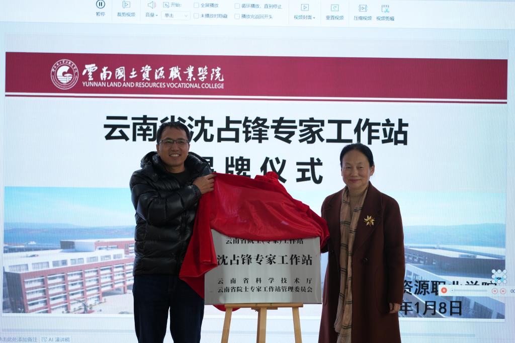 陈颖校长与沈占锋博士共同为“云南省沈占锋专家工作站”揭牌