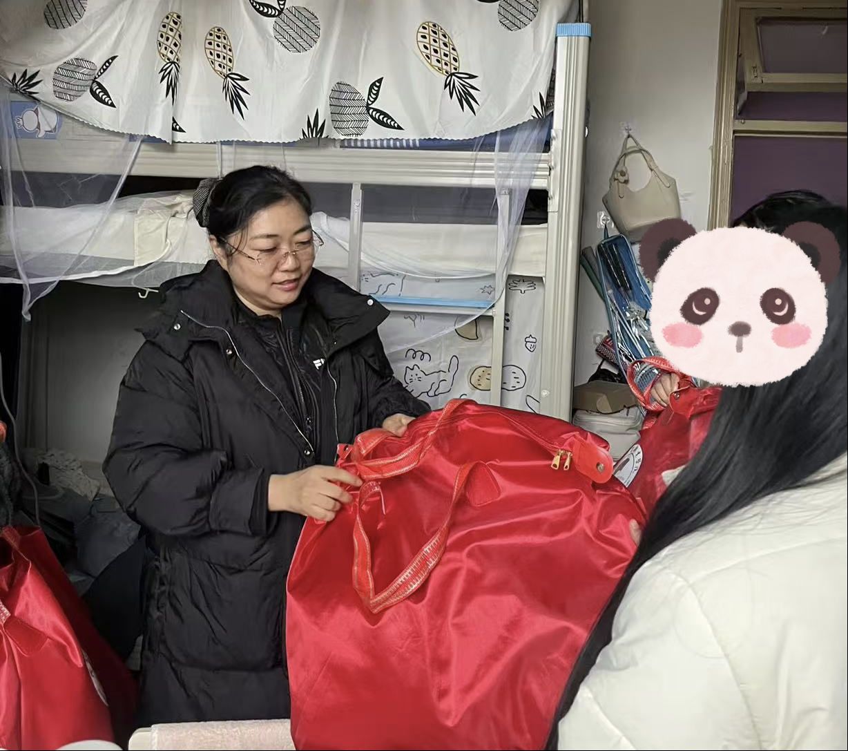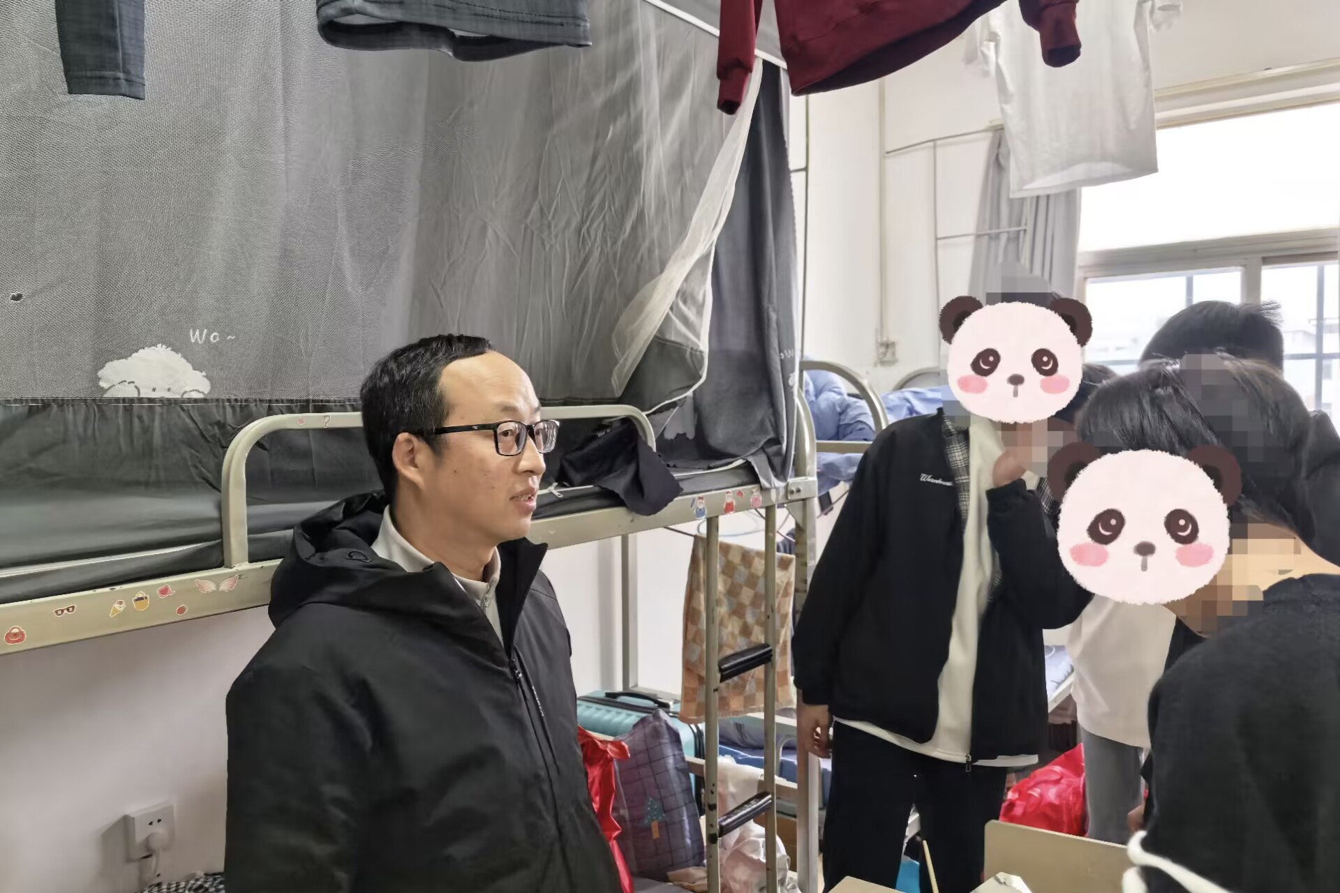 在绘臻苑三栋学生宿舍,寸建平亲自将厚实的毛毯递到受助学生手中,并关切地询问同学们的日常生活与学习状况。“天气虽冷,但学校永远是你们坚实的依靠,希望大家穿得暖、学得好,无畏寒冬。”校领导这温馨的叮嘱与关怀,如同一股暖流。