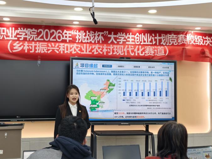 11月28日,我校在阳宗校区崇实楼智慧教室举办2026年“挑战杯”大学生创业计划竞赛校级决赛。比赛共设置科技创新和未来产业、乡村振兴和农业农村现代化、社会治理和公共服务、生态环保和可持续发展、文化创意和区域合作五大赛道,全面覆盖社会发展的多个领域。