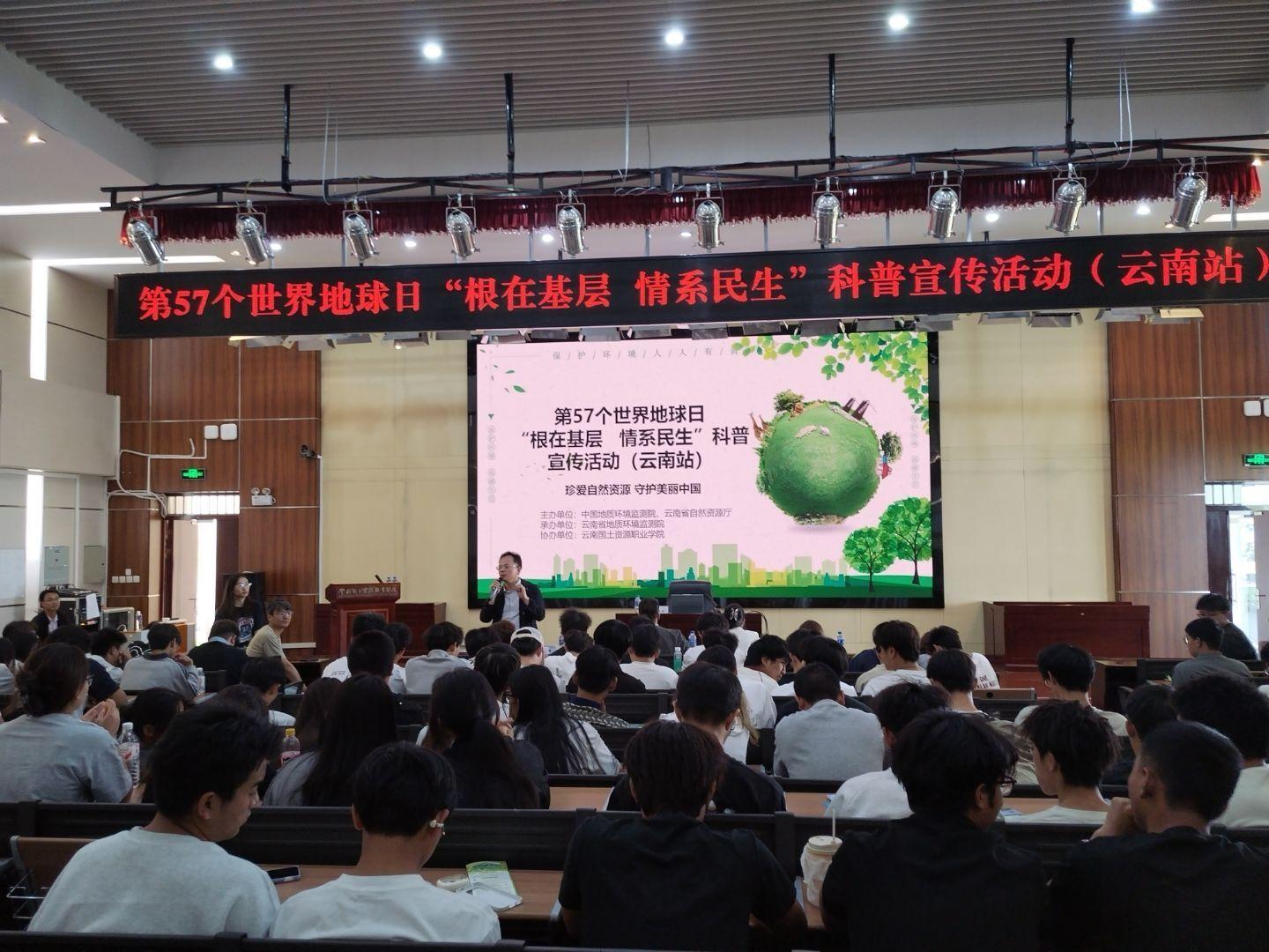 4月13日,第57个世界地球日“根在基层 情系民生”科普宣传活动暨地下水科普宣传巡讲活动(云南站)在我校宝鼎讲堂成功举办。本次活动以“珍爱自然资源 守护美丽中国”为主题,纪念国家地下水监测网建成运行十周年,面向广大师生普及地下水资源保护知识,强化生态文明理念,深化校地科普合作与协同育人。