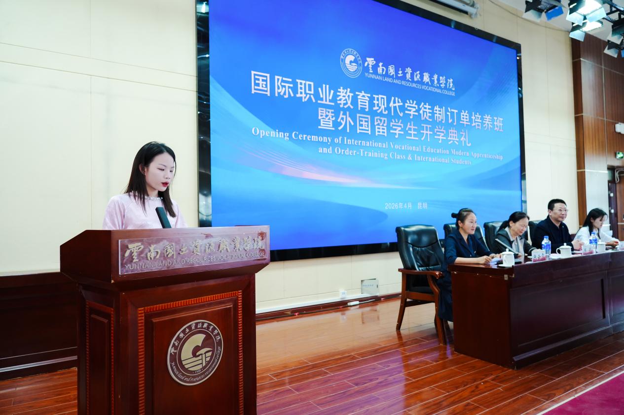 陈颖表示,学校作为云南省“双高”院校之一,一直努力推进国际化办学,取得了丰硕成果,为“留学中国·学在云南”贡献了国土力量。她指出,学校立足国土资源等特色专业优势,持续深化产教融合、积极推动职教出海,将行业标准与企业需求深度融入人才培养全过程,形成了校企协同育人的长效机制;同时,学校主动服务“一带一路”建设,通过技术技能培训、职业标准输出等多种形式,推动中国职教理念与标准走向海外。最后,她对外国留学生提出三点要求:一是珍惜时光,勤学善思,尽快融入新的学习与生活;二是尊重差异,包容互鉴,做中外文化交流的使者;三是心怀梦想,勇毅前行,将所学转化为服务本国建设与促进中外友好的实际行动。