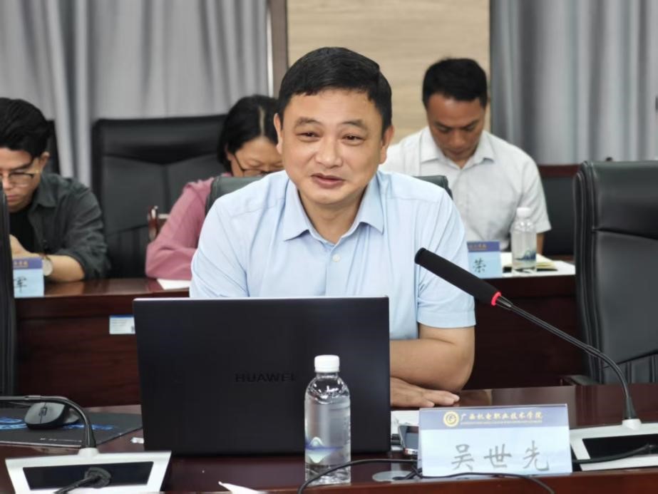 吴世先介绍了广西机电职业技术学院发展历程、办学特色、办学条件以及“双高”建设情况,并详细介绍了广西机电改革发展、办学治校的做法和经验,希望下一步加强交流合作,建设成为兄弟院校。
