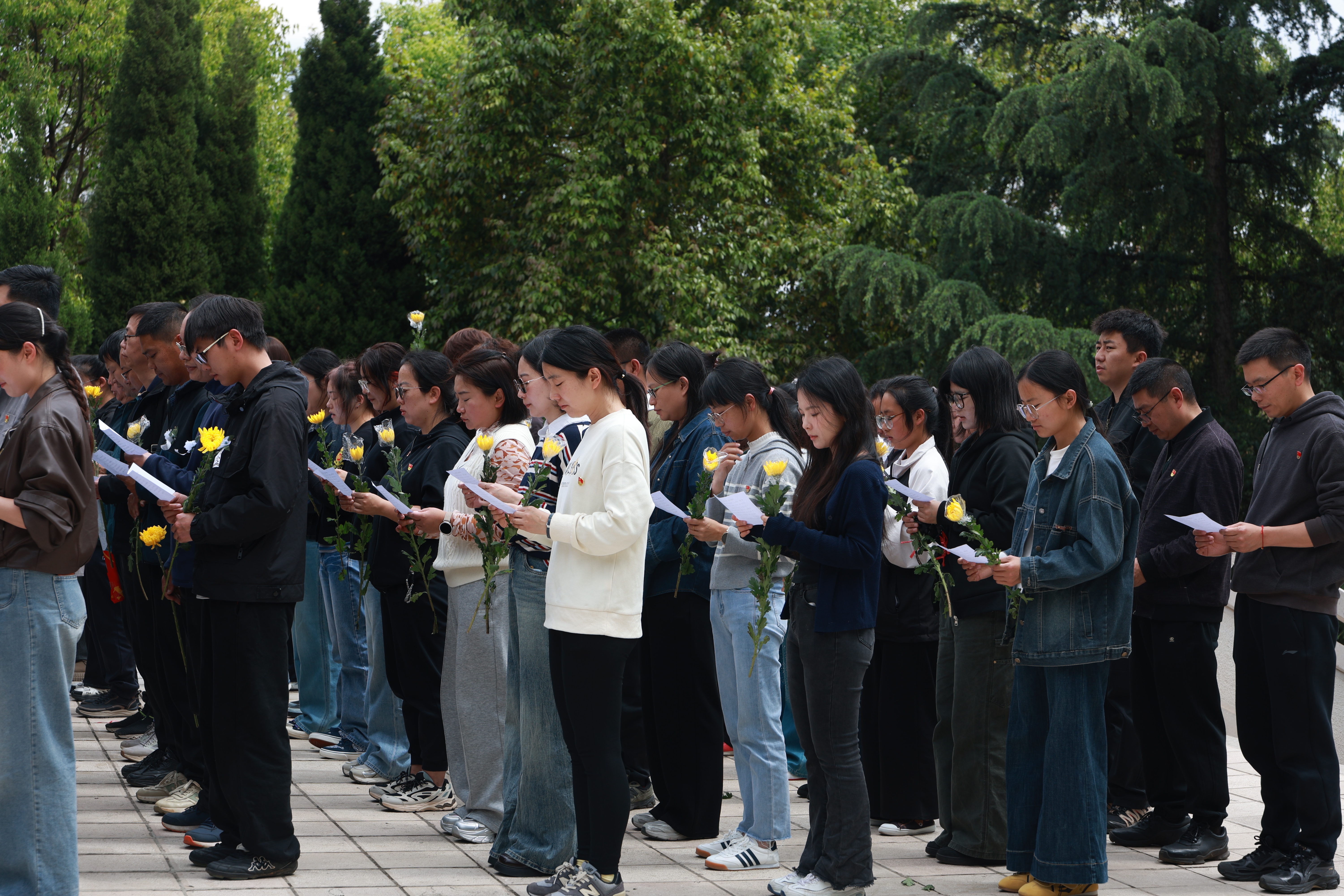 活动在庄重肃穆的氛围中拉开帷幕。全体人员整齐列队,面向烈士纪念碑肃立默哀,深切表达对革命先烈的崇高敬意与深切哀思。随后,师生代表依次向烈士墓敬献鲜花,以朴素而庄重的方式追思先烈功绩,告慰先烈英灵。在社区工作人员的讲解下,大家认真聆听革命先烈的英勇事迹,重温峥嵘岁月,感悟先烈们为国家独立、民族解放舍生忘死、无私奉献的崇高精神。