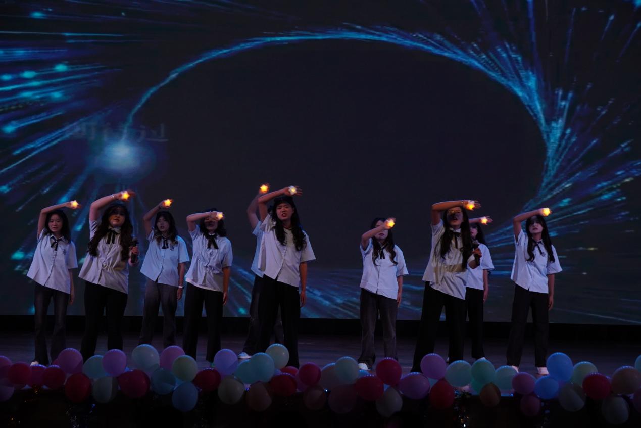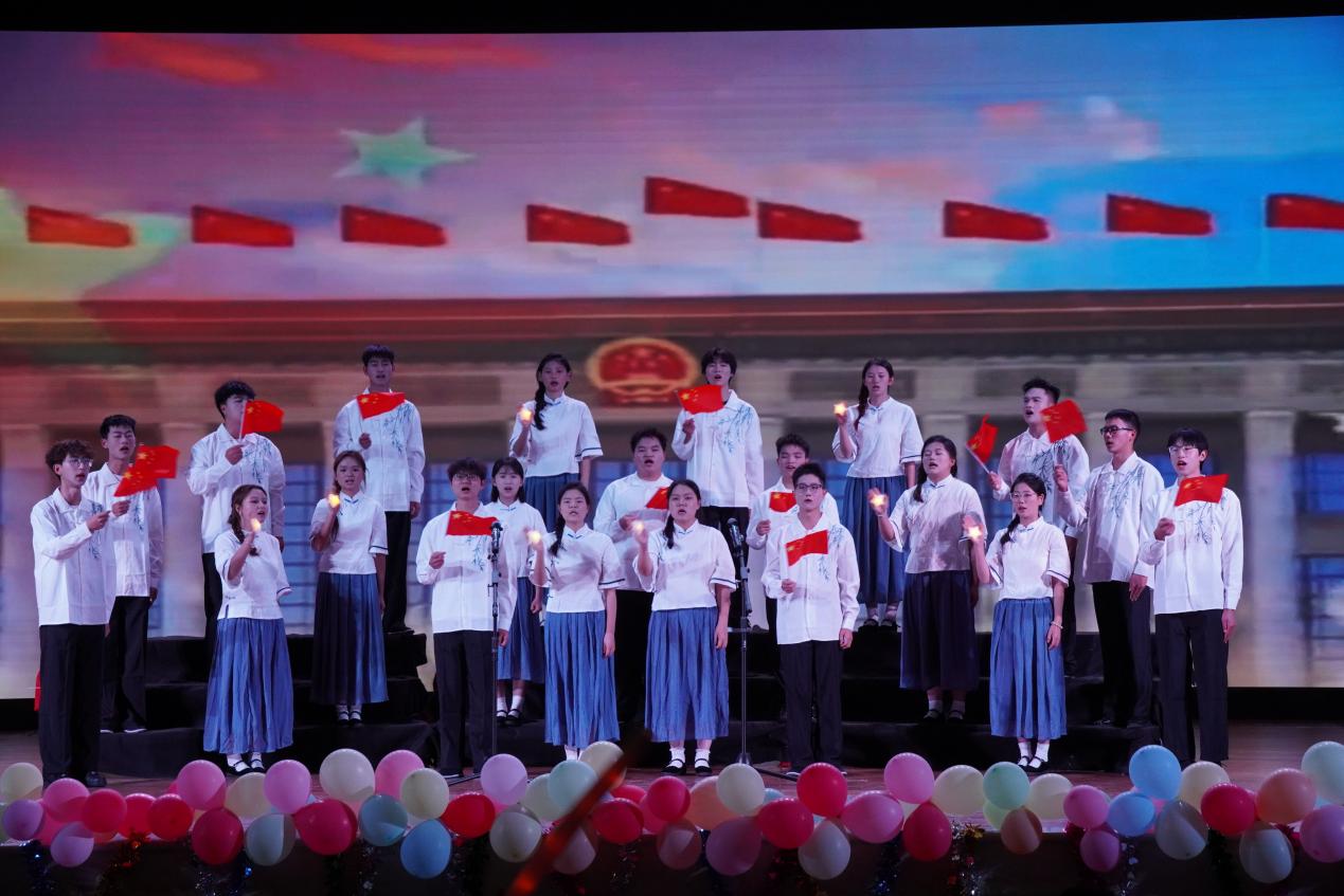 “山河筑梦·家国情怀篇”将晚会推向高潮。夏雨书苑舞蹈《折枝花落衣》以翩跹舞姿勾勒山河画卷,文艺部小品《破晓》致敬先辈热血征程;秘书部歌舞《赴月落空》融合古典与现代;在光明天使服务队带来的舞蹈《光行万象》中,舞者们以身体为媒介,在明暗交错间模拟出“追光者”的姿态,每一个定格都充满对生活的热爱与坚韧;合唱《少年中国说》作为本篇章的压轴巨献,瞬间点燃了全场的热情。队员们以铿锵有力、气吞山河的歌声,将“少年智则国智,少年强则国强”的豪情壮志演绎得淋漓尽致。激昂的旋律激励着每一位国土学子以青春之我,创建青春之国家,将晚会“山河筑梦”的主题升华至顶峰。