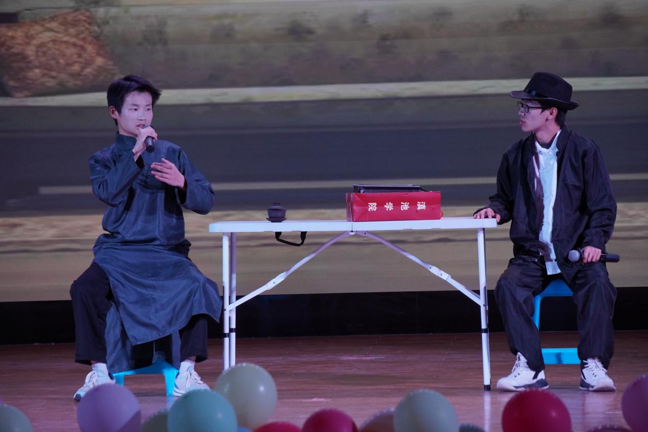在“青春序章·多元风采秀”篇章中,大学生艺术团一曲《暖暖》温情开场,歌声如春风拂过礼堂;爱咨家和文艺部演绎的舞蹈《青春New伴》和《Ditto》以灵动步伐诠释协作之美;宣传部小品《榜样的力量》再现志愿服务动人瞬间,引发全场共鸣。秘书部的小品《梅兰芳蓄须》将晚会推向了一个深沉的情感高点。演员们以极具张力的舞台表现,重现了京剧大师梅兰芳先生在国家危难之际,“蓄须明志”、不为侵略者演出的民族气节,生动诠释了老一辈艺术家“威武不能屈”的爱国风骨,让在场师生在肃然起敬中深刻体悟到跨越时空的家国大义,赢得了全场经久不息的掌声。
