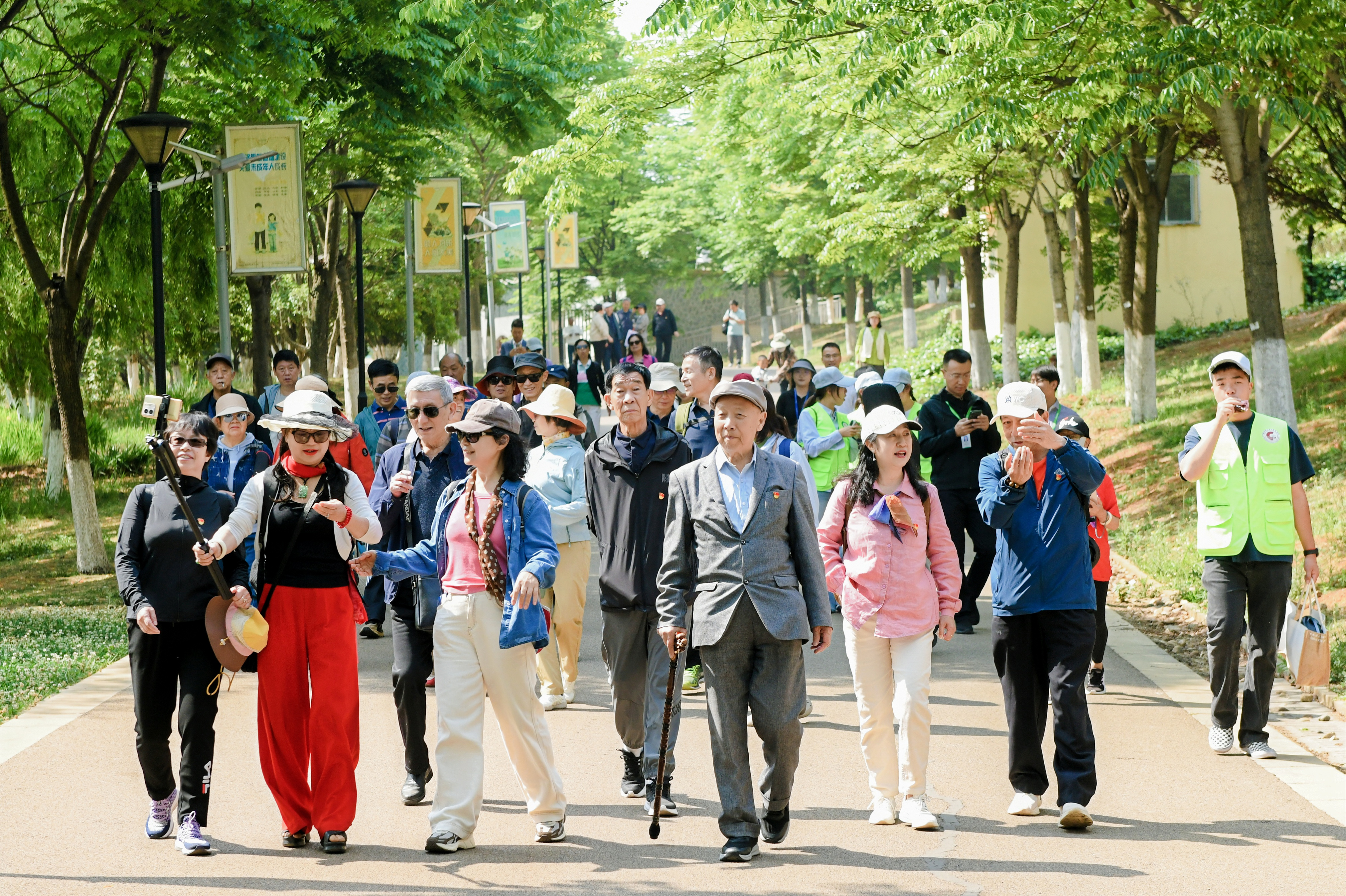 为深入关心关爱离退休教职工党员身心健康,丰富老党员精神文化生活,增强党组织凝聚力,4月17日,我校离退休党委精心组织开展“最美四月天”品牌活动之“桑榆健步展风采 银发初心向未来”主题党日活动。离退休教师党员、校关工委成员,以及商务信息学院青年志愿者、心理社团学生共同参与,在春日暖阳中强健体魄、砥砺初心。