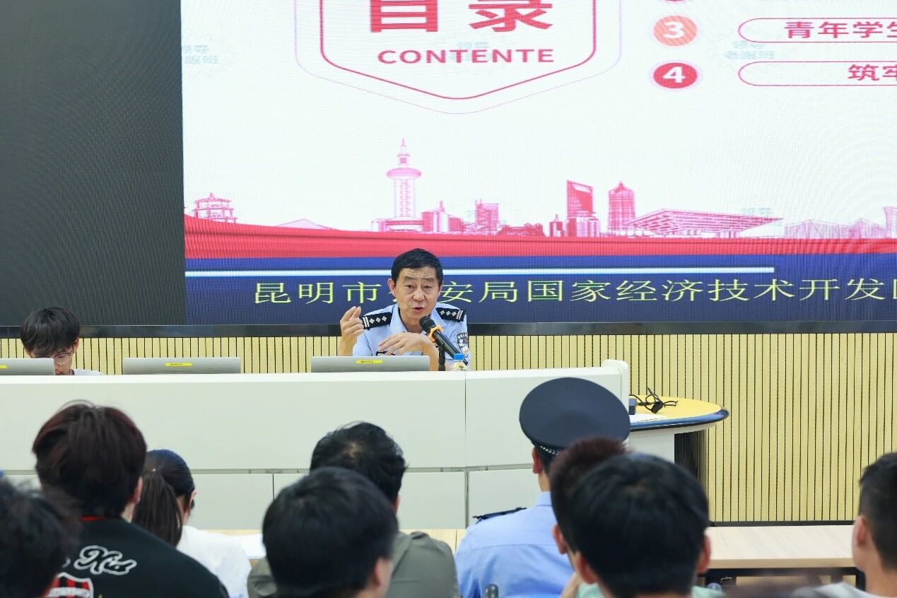 闫文赋以“筑牢安全屏障 青春护航中国”为主题作安全知识专题讲座。他围绕国土安全、宪法常识等核心内容展开,结合青年学生生活实际,重点剖析了禁毒、电信诈骗、网络赌博、酒驾等高频风险领域。他以真实案例为切入点,用通俗易懂的语言拆解违法犯罪套路,讲解防范技巧。讲座设置互动问答环节,闫文赋警官耐心解答同学们的疑问,幽默风趣的表达让现场氛围轻松热烈,笑声与掌声不断,同学们参与热情高涨。